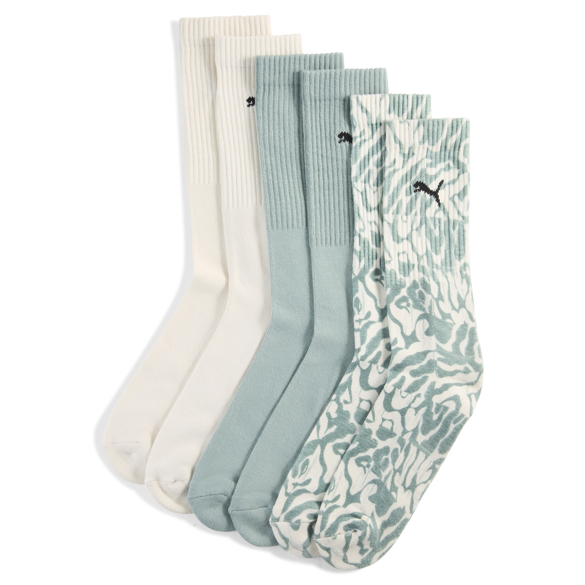 PUMA Bedrukte uniseks crewsokken (set van 3), Groen, Maat 35-38