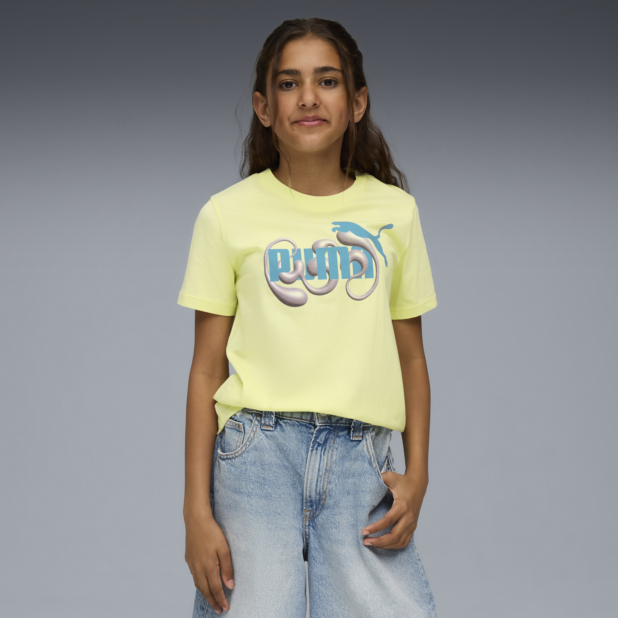 PUMA Graphic No. 1 Logo T-shirt voor Dames, Goud, Maat 13-14Y