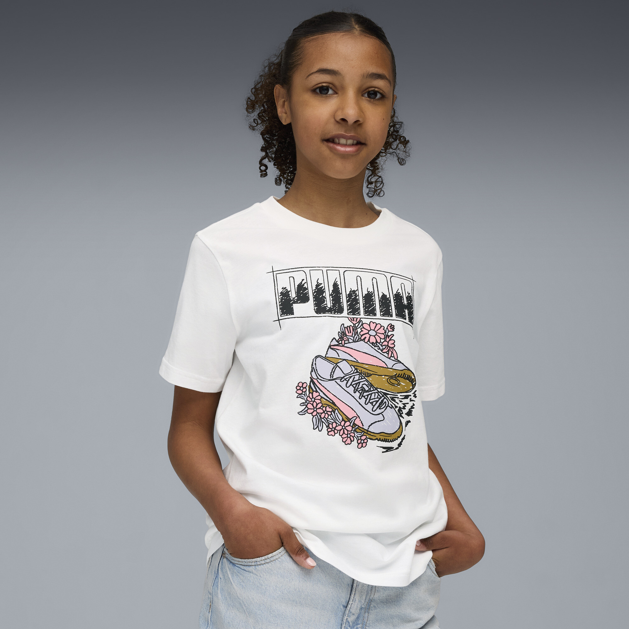 PUMA Graphic Sneaker T-shirt voor Dames, Wit, Maat 140