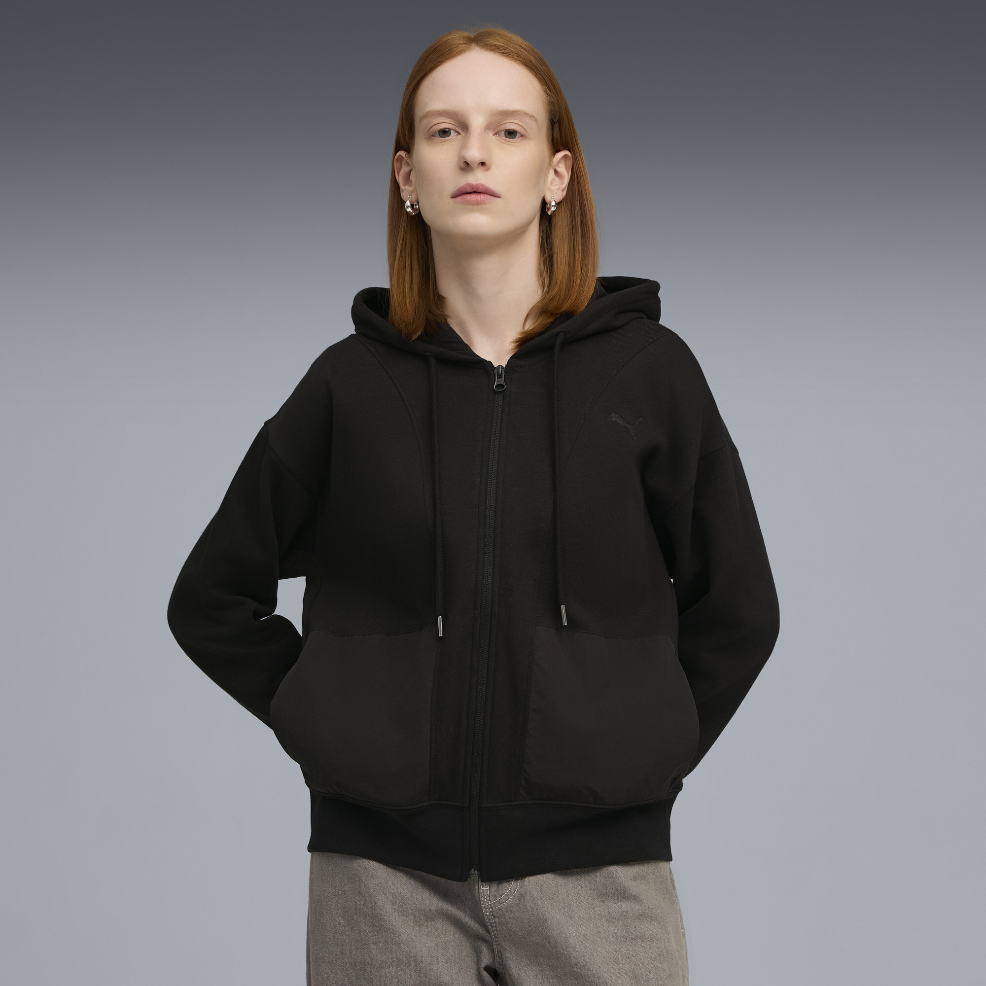 PUMA HER relaxte hoodie met volledige rits voor Dames, Zwart, Maat XXS