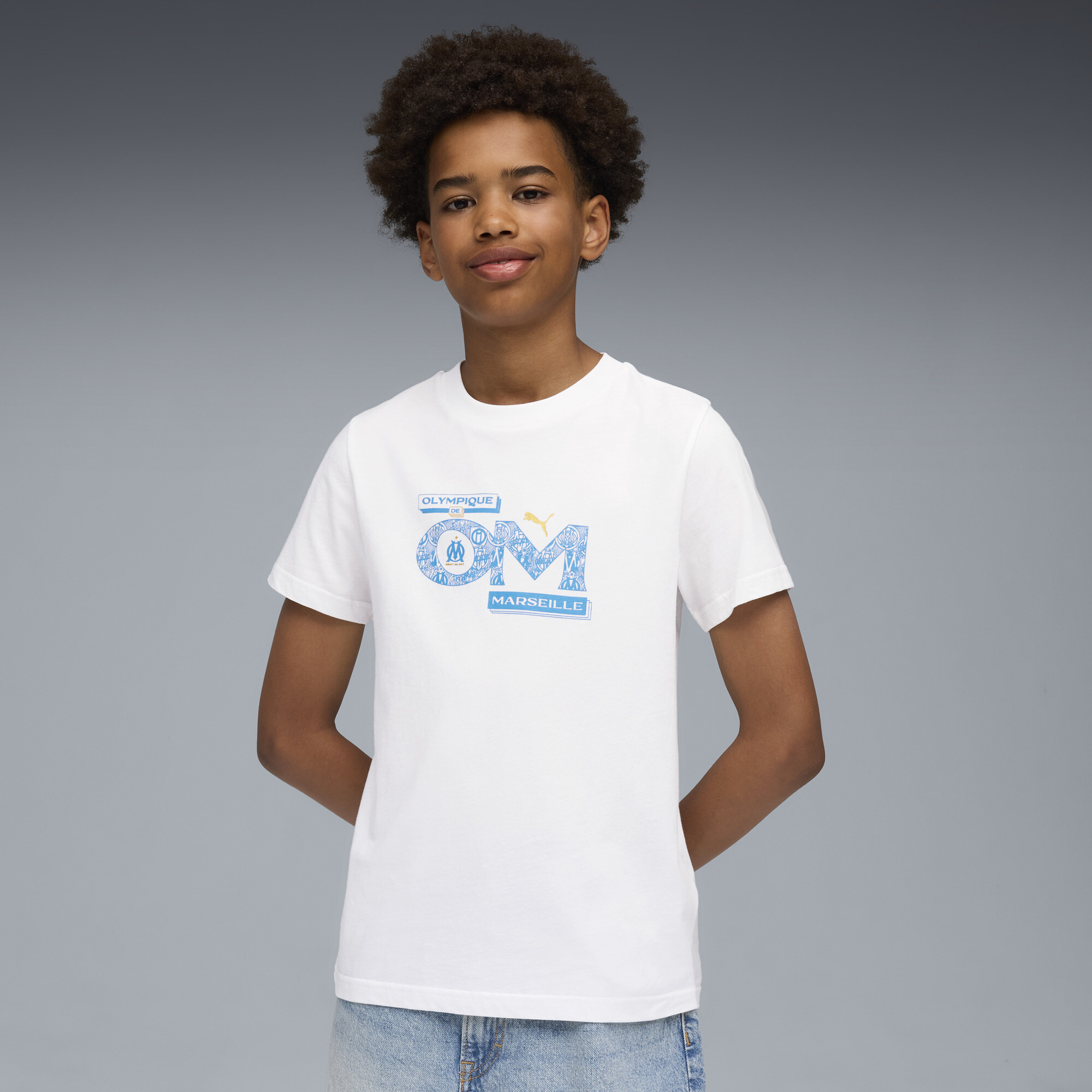 PUMA Olympique de Marseille FtblCulture T-shirt, Blauw/Wit, Maat 13-14Y - afbeelding 1
