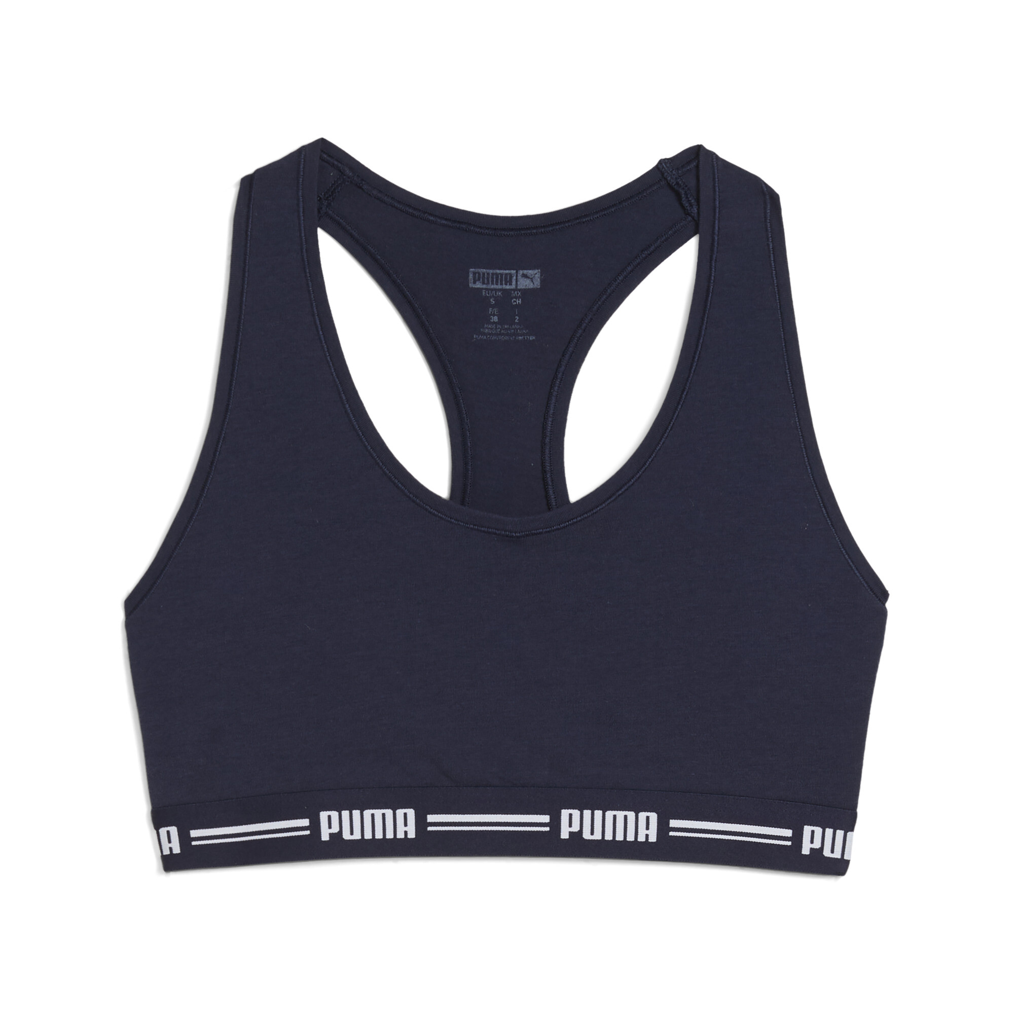 PRODUCTVERHAAL Deze set bevat 1 iconische top met racerback van PUMA, die meer ondersteuning biedt dan een gewone bh/top. Dankzij het ontwerp van de bandjes kun je met deze racerback-top je houding verbeteren. En de top is beter in het opvangen van schokken. Het terugkerende logo op de onderband zorgt ervoor dat dit modieuze item in lagen of op zichzelf kan worden gedragen. Zacht aanvoelende, elastische stof Voorkant met ronde hals Zachte stretchstof van een mix van katoen en modal Racerback fit Sportief ondergoed voor dames Model met racerback