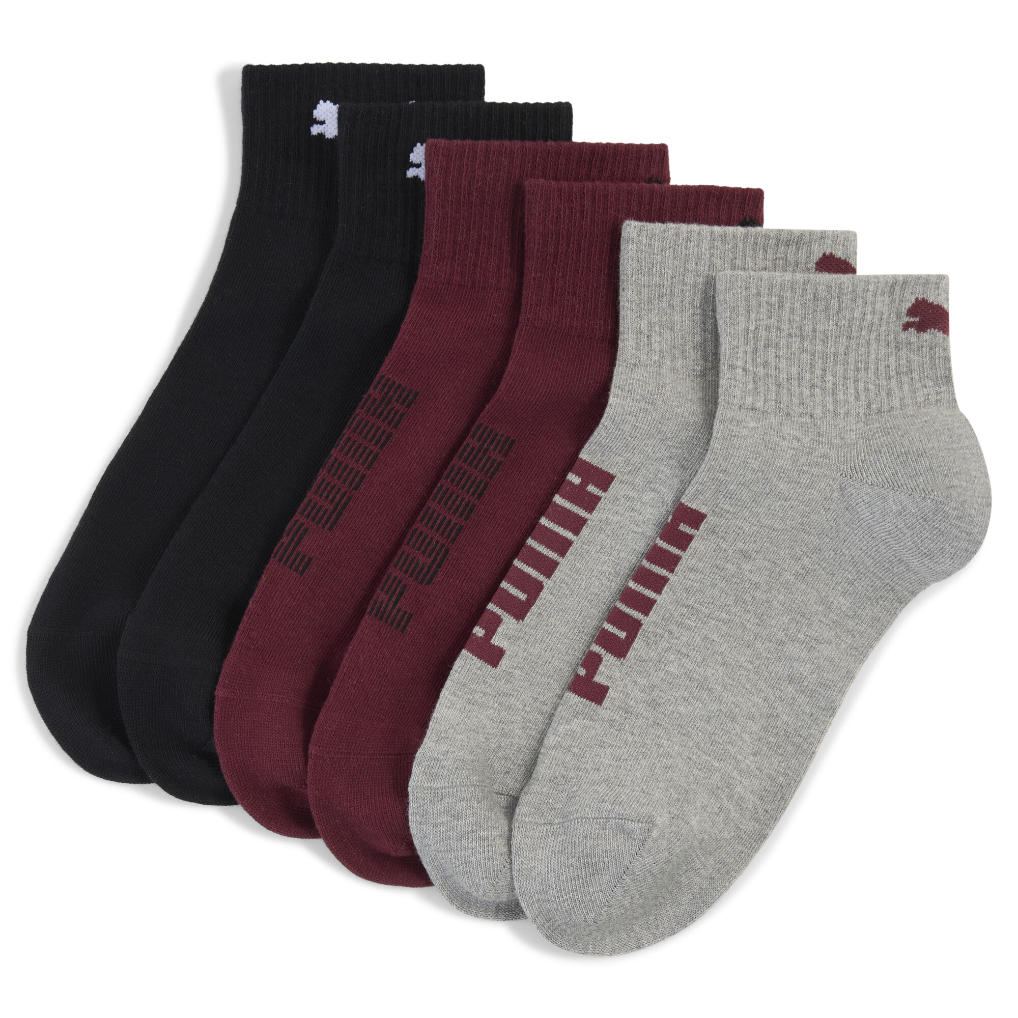 PUMA Uniseks quartersokken (set van 3), Zwart/Rood, Maat 35-38