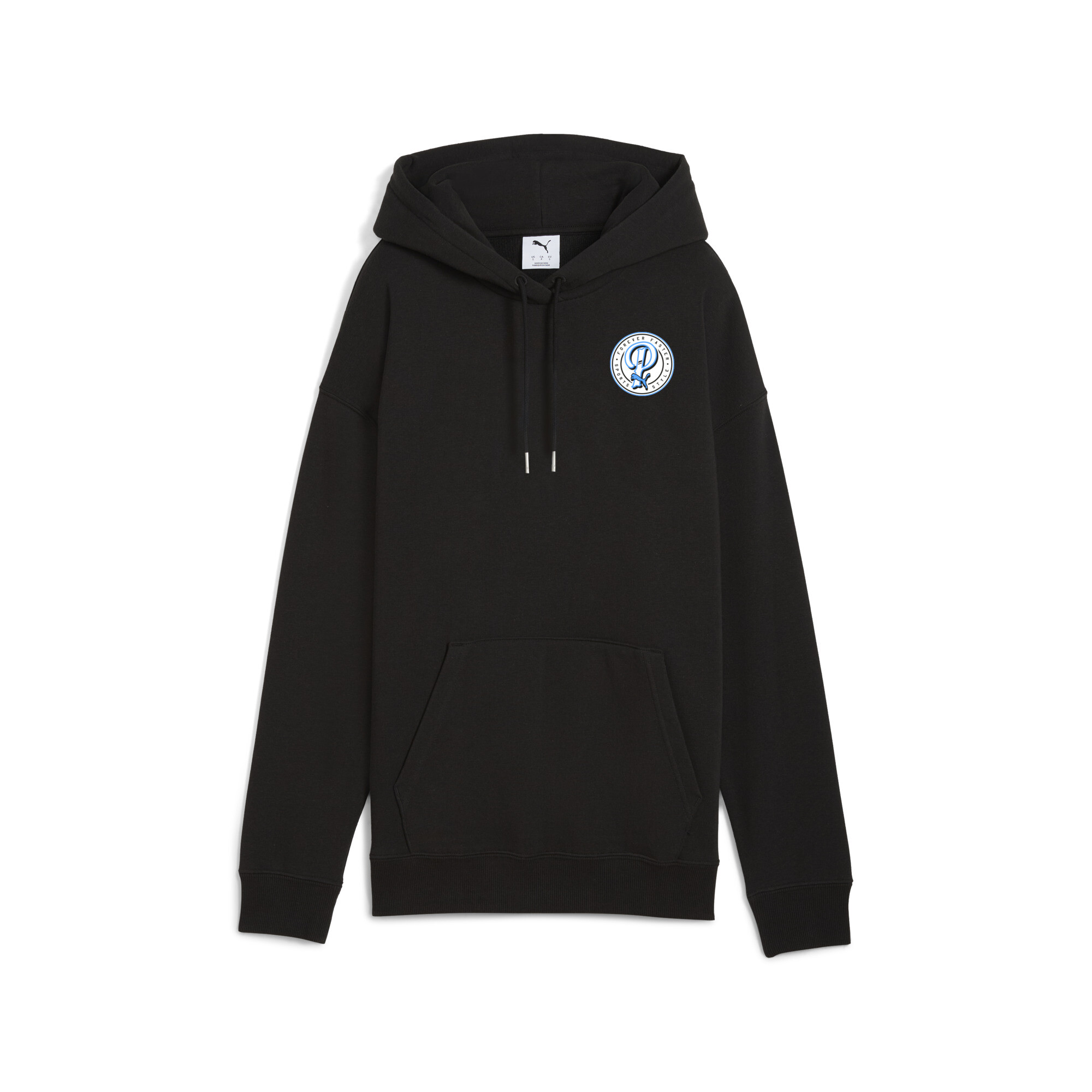 PUMA Wardrobe Essentials Sports Legacy relaxed graphic hoodie voor Dames, Zwart, Maat L